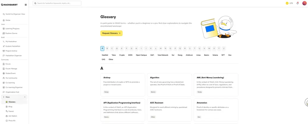HackQuest empowers every learner and builder with the resources to succeed, including global events, forums, co-learning camps, a glossary for Web3 immersion, blogs for updates and insights, faucets for test tokens, a job station for opportunities, and a press kit to explore HackQuest’s mission.