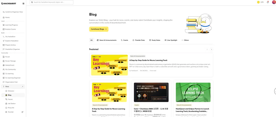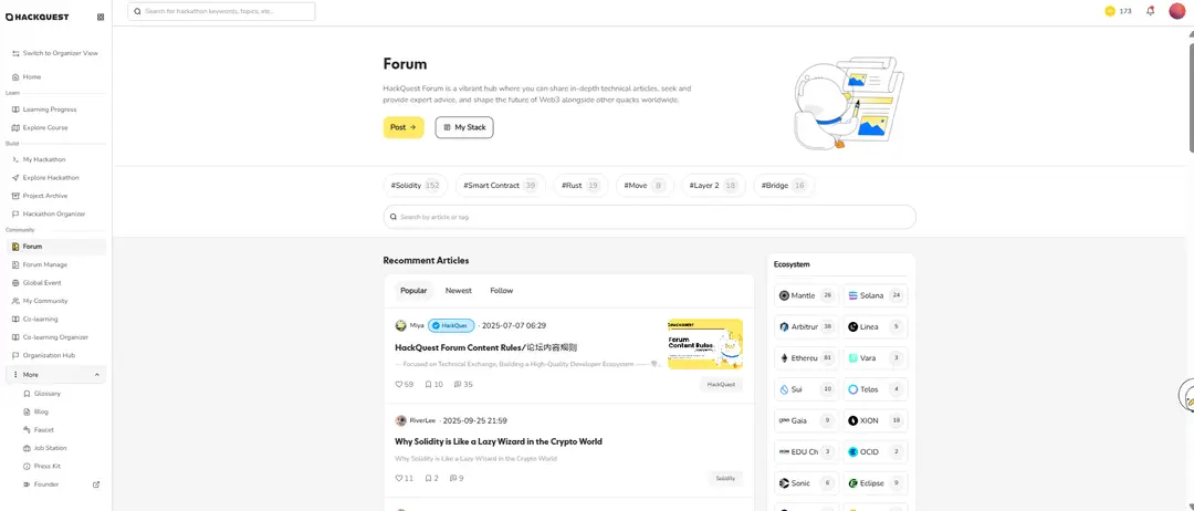 ●HackQuest Forum is a vibrant hub where you can share in-depth technical articles, seek and provide expert advice, and shape the future of Web3 alongside other quacks worldwide. Start posting today!