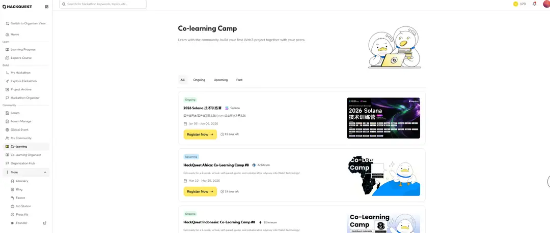 ●Join co-learning camps where Web3 enthusiasts collaborate to solve challenges and share knowledge.