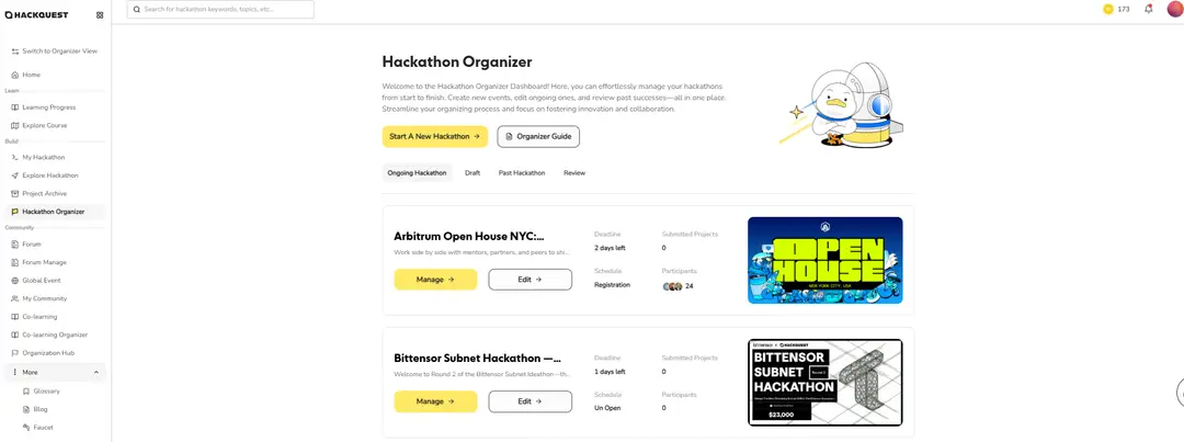 ●Organize Your Own Hackathon: Kickstart your own hackathon by clicking on the “Start a New Hackathon” button and bring your ideas to life!