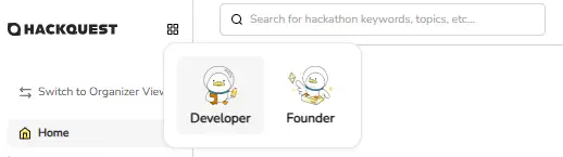 ●Navigate to the “Founders” portal on the left sidebar or simply click the square icon next to the HackQuest logo to switch modes.