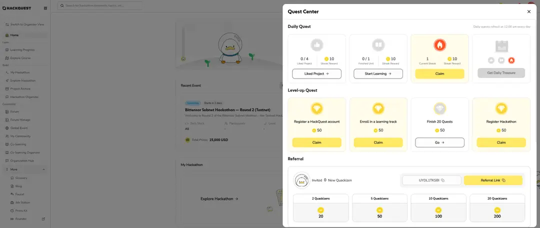 Complete Quests, Refer, and Earn Rewards