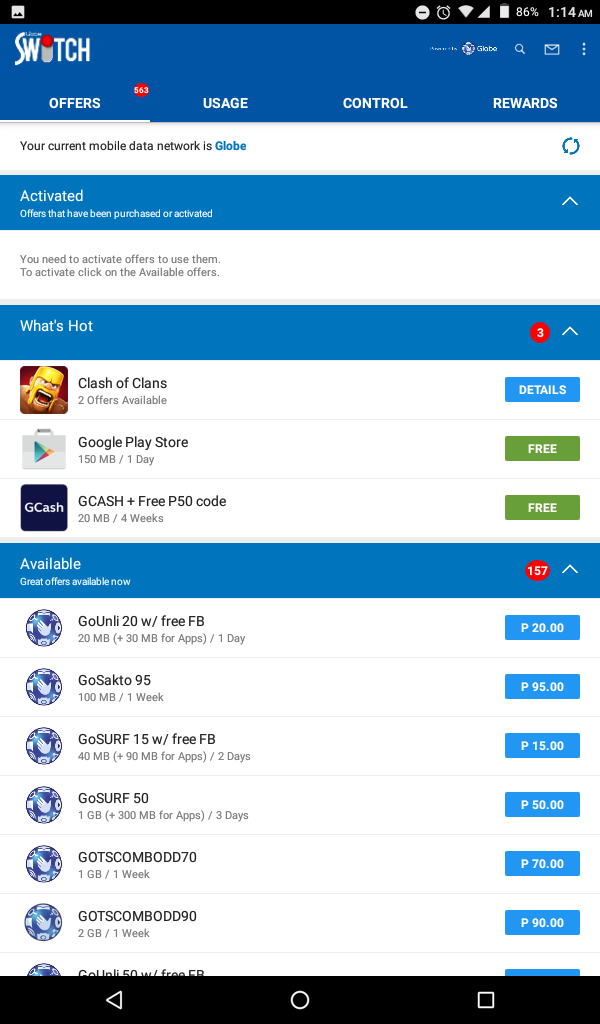 SWITCH is a Globe-exclusive store that brings you mobile internet access to the most popular apps at the most affordable prices available. Useful control features keep you informed of your mobile internet usage, preventing unwanted charges, so you have full control of your budget. With Globe Switch, you can feel confident to explore a world of amazing deals on mobile internet access like never before.