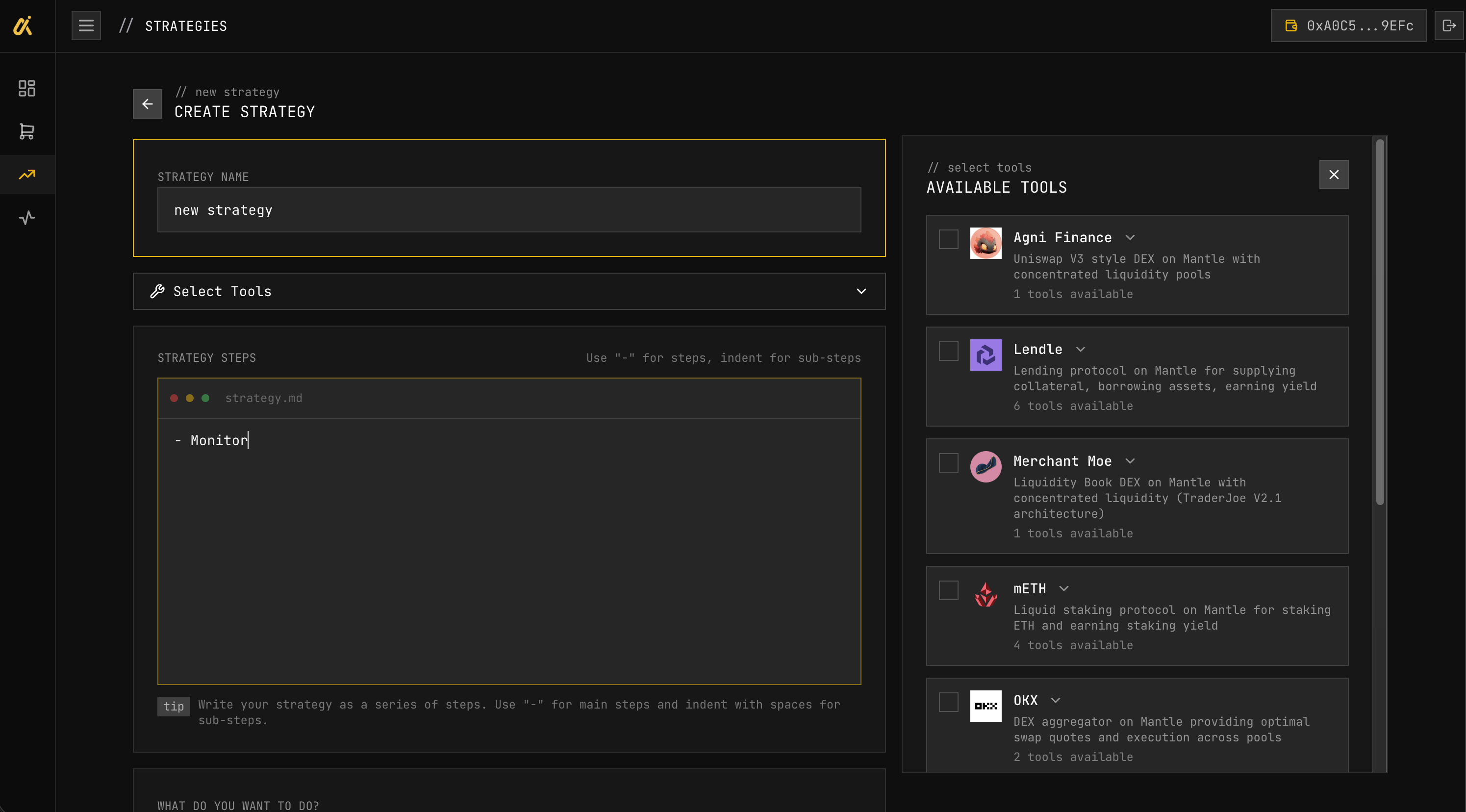 Autonomous yield farming on the Mantle blockchain, powered by AI agents. Create yield strategies in plain English, let AI agents execute them automatically on delegated wallets, and adapt in real time