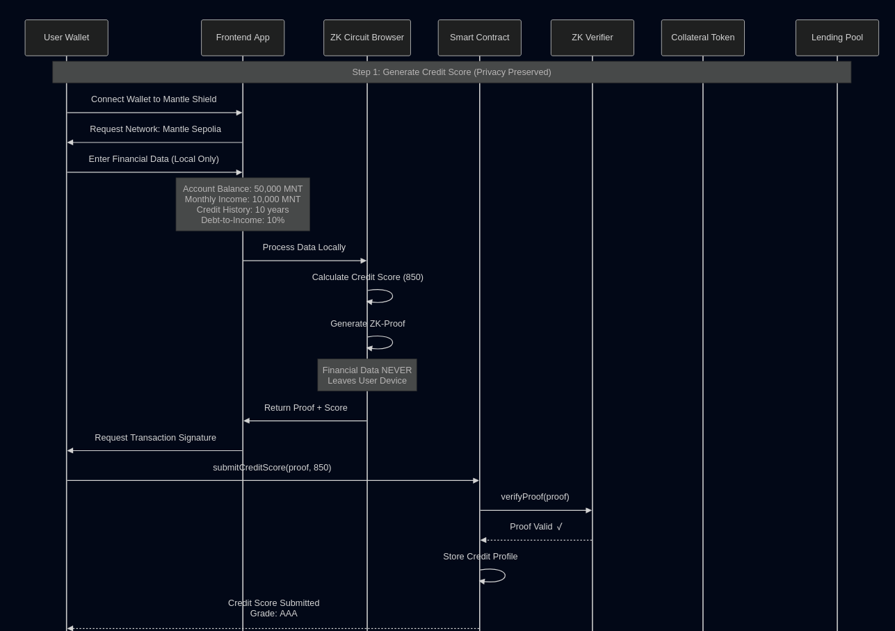 Mantle Shield is a groundbreaking DeFi protocol that brings traditional credit scoring to blockchain while preserving user privacy through Zero-Knowledge proofs.