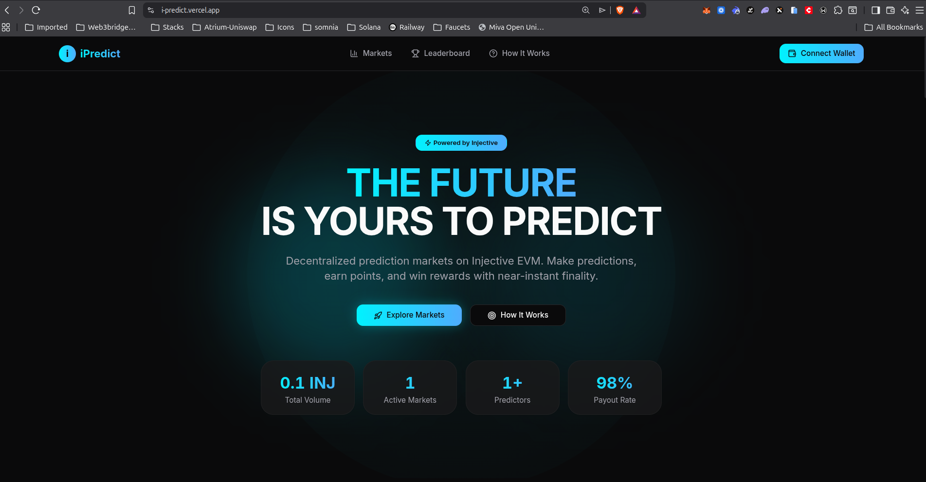 Built on **Injective EVM** for near-instant finality and minimal gas fees, iPredict demonstrates how prediction markets can drive community governance and collective intelligence at scale.