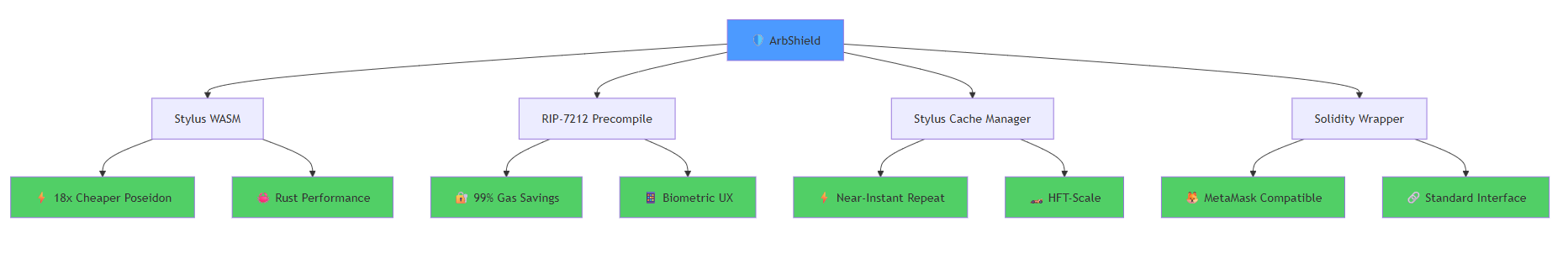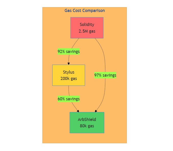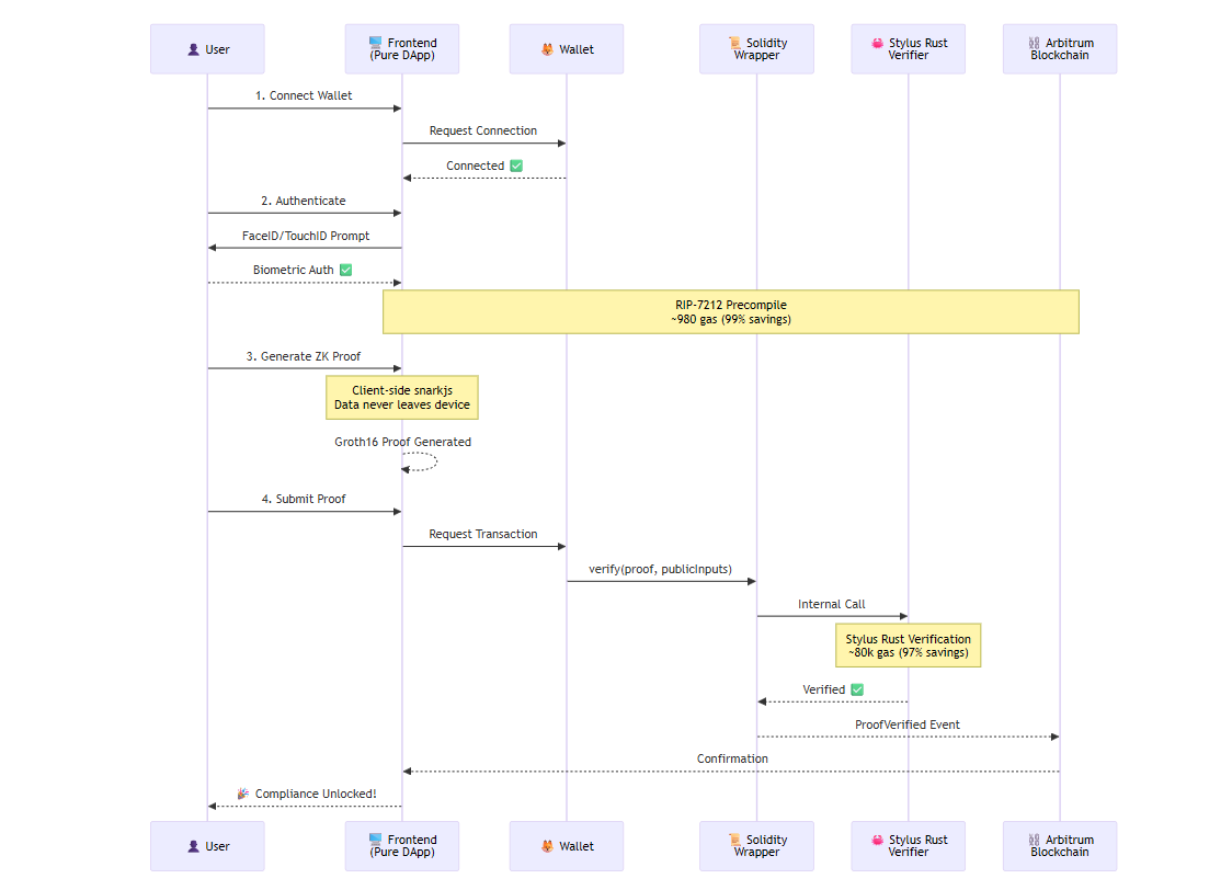 ZK Verification | Stylus Rust + arkworks | Native WASM execution | 97% savings |