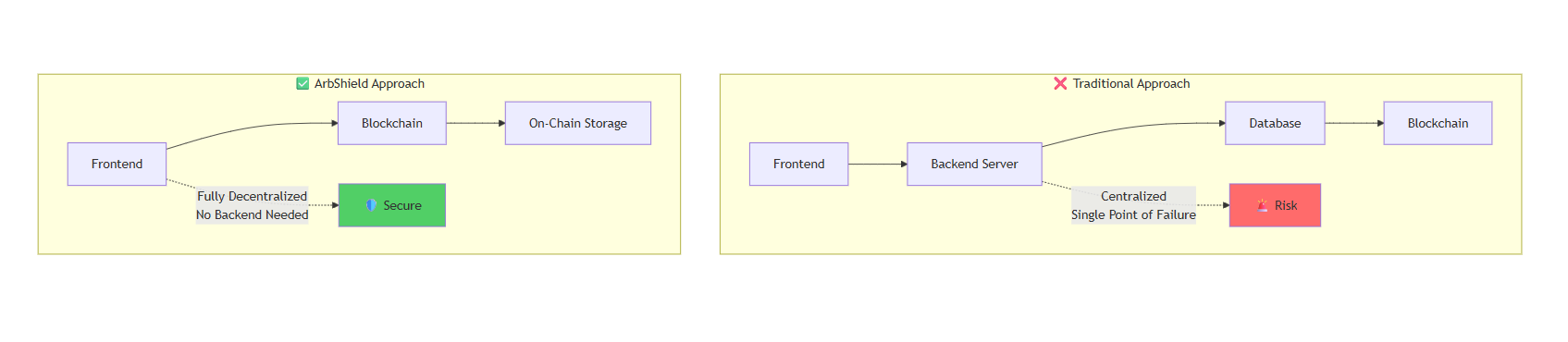 Data Storage | ❌ Centralized DB | ⚠️ Off-chain | ⚠️ Off-chain | ✅ On-chain |