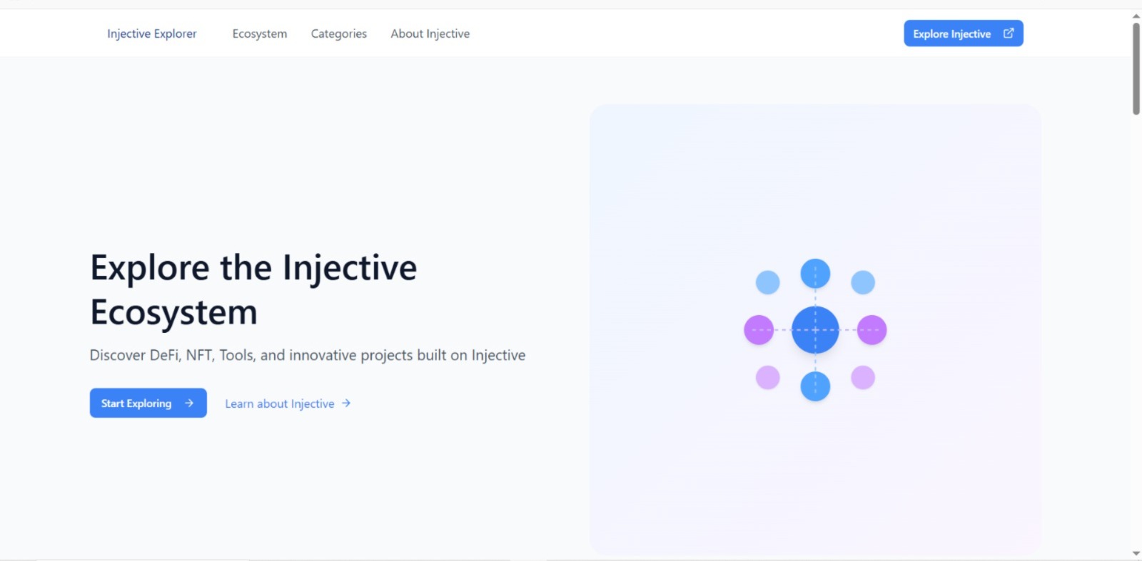 Injective Ecosystem Explorer is a minimalist and user-friendly web platform designed to help users easily explore and understand the growing ecosystem built on the Injective blockchain.