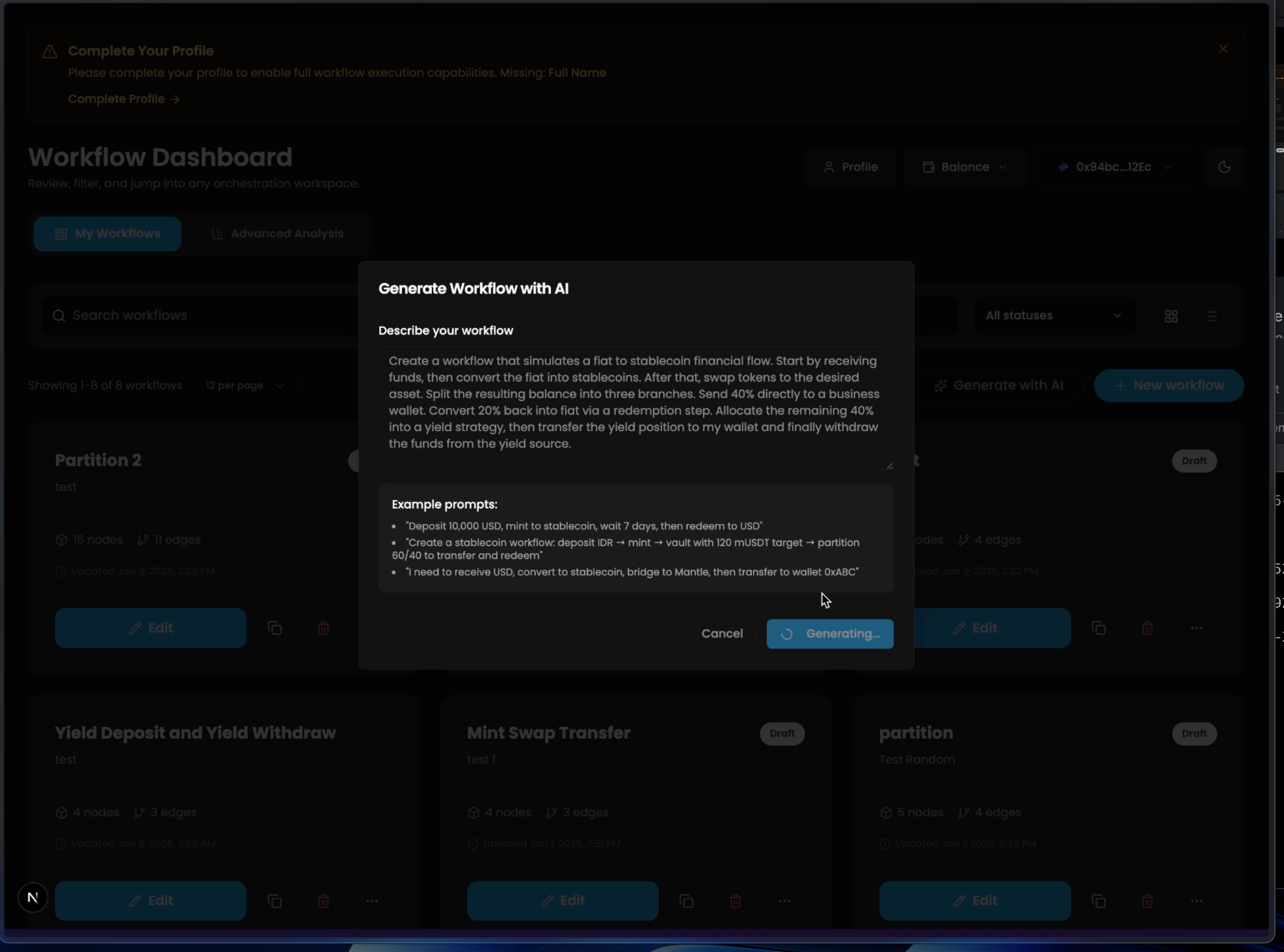 Stablecoin workflows are fragmented across DEXs, bridges, yield protocols, and off ramps. Requiring technical expertise and manual coordination.