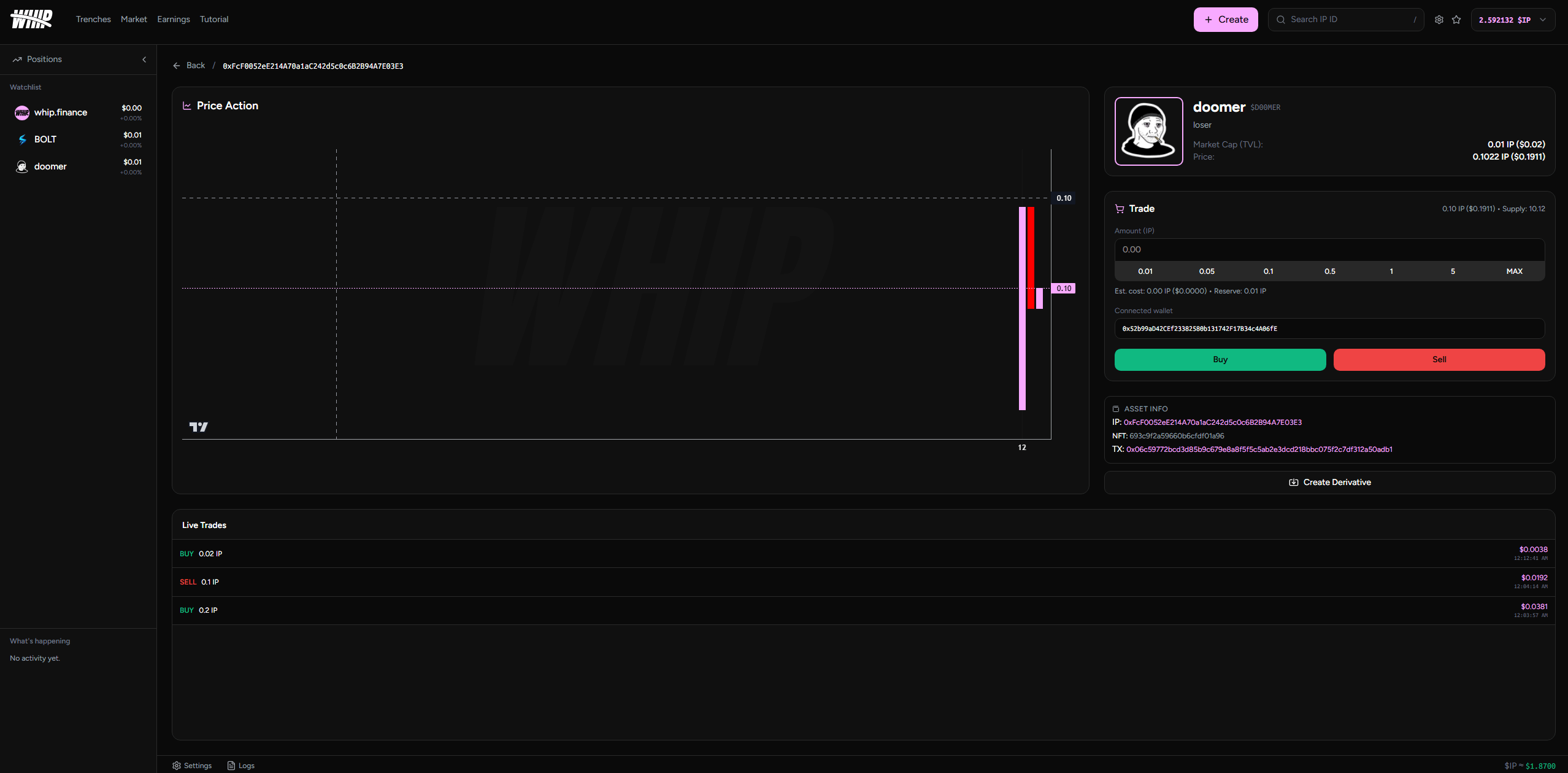 We let users register their assets on the platform, and a market (or a trench) is created for it. Now it is tradable. "What's the motivation?" you may ask. IP owners who register their assets on whip.finance earns 1% from the total volume. This is an insane revenue opportunity. And they don't even have to lock or transfer their assets.
