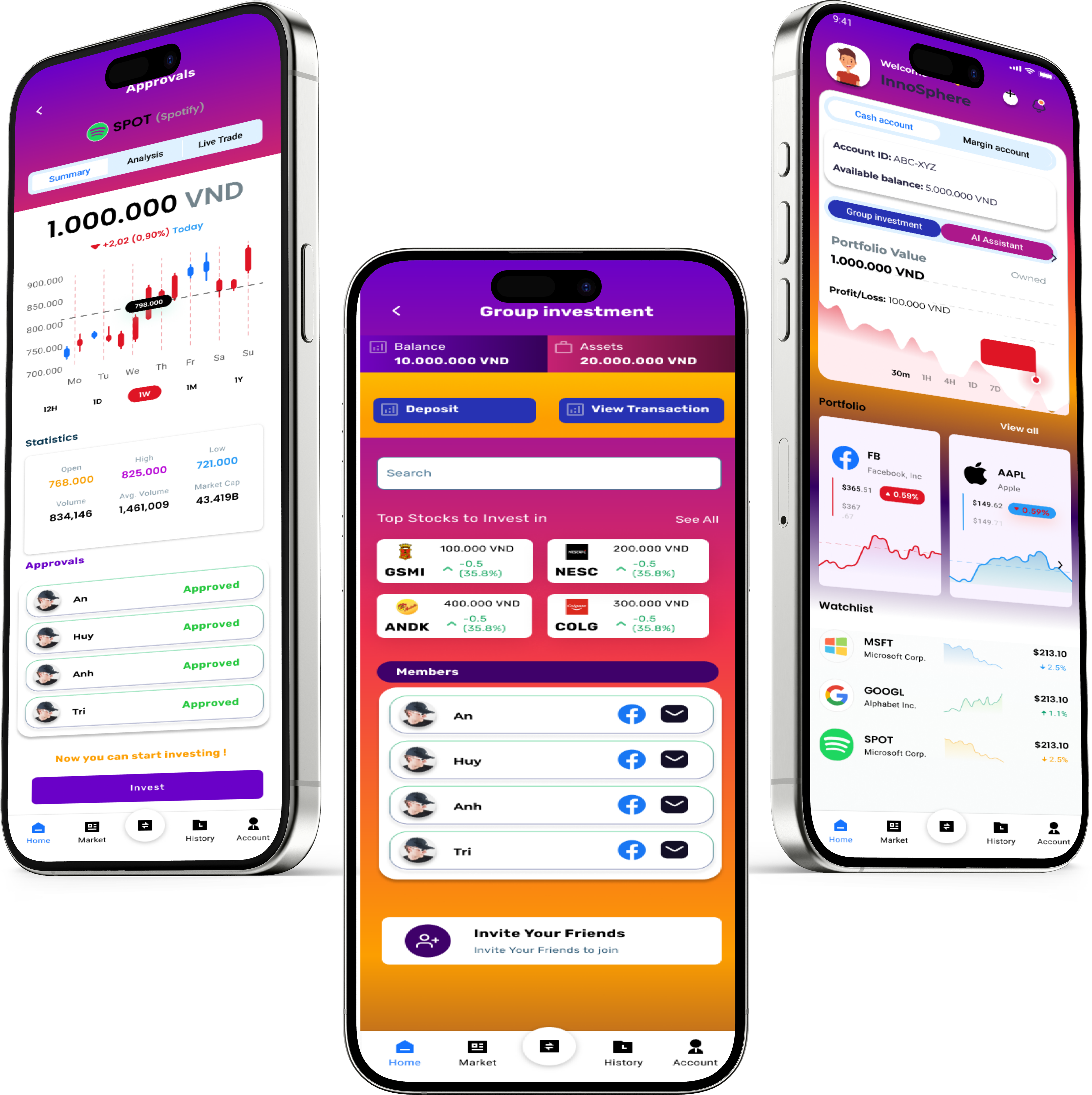 often feels complex, individual, and intimidating, leaving first-time investors underserved. Our project introduces two core features — Group Investment and an AI Assistant — to make investing more collaborative, transparent, and accessible.
