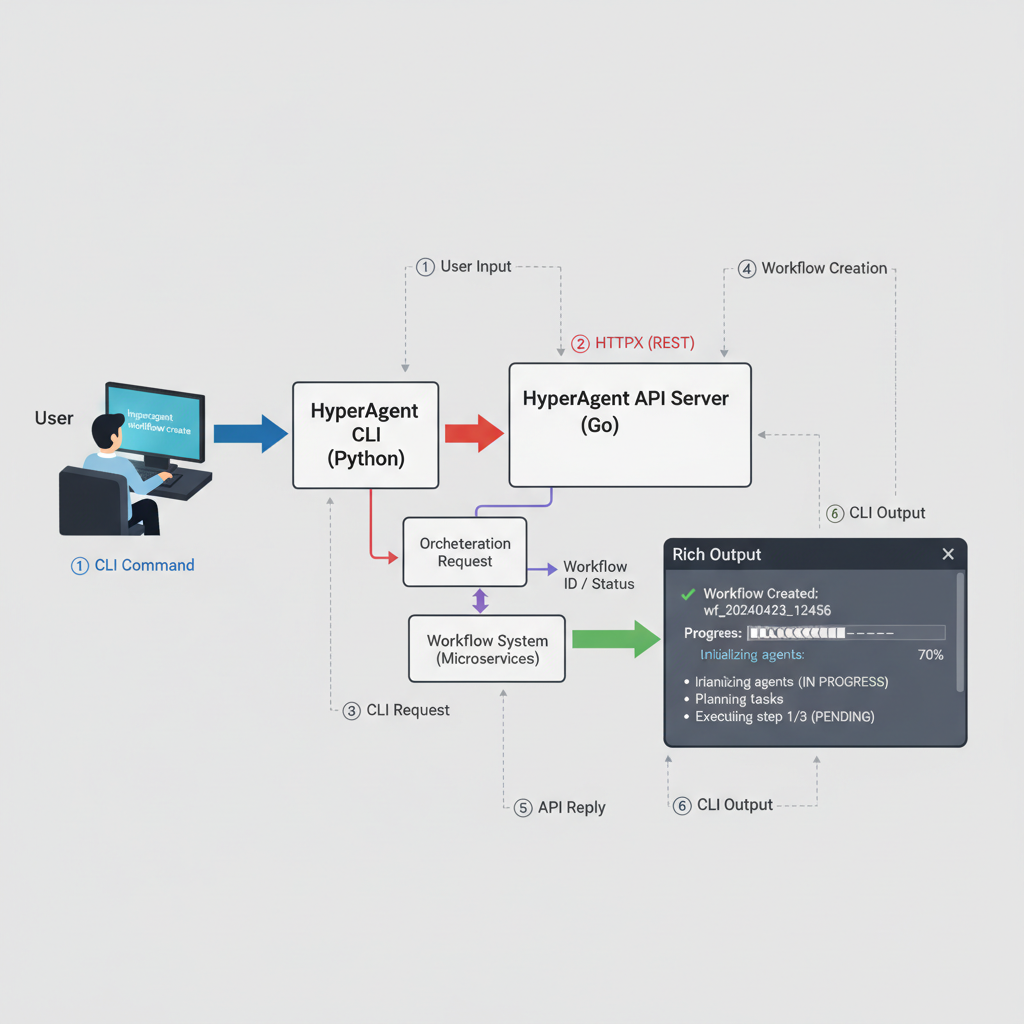 Developers define high-level requirements; HyperAgent handles the operational complexity.