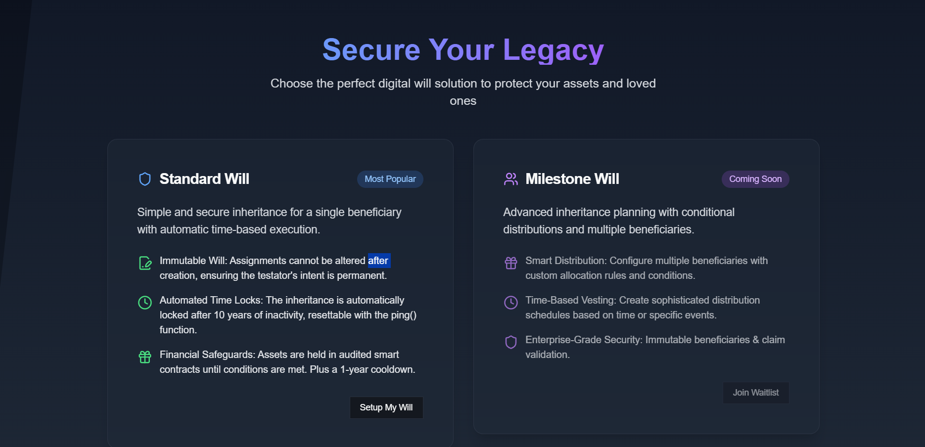 Secure Asset Transfers: Trustless, tamper-proof inheritance systems.