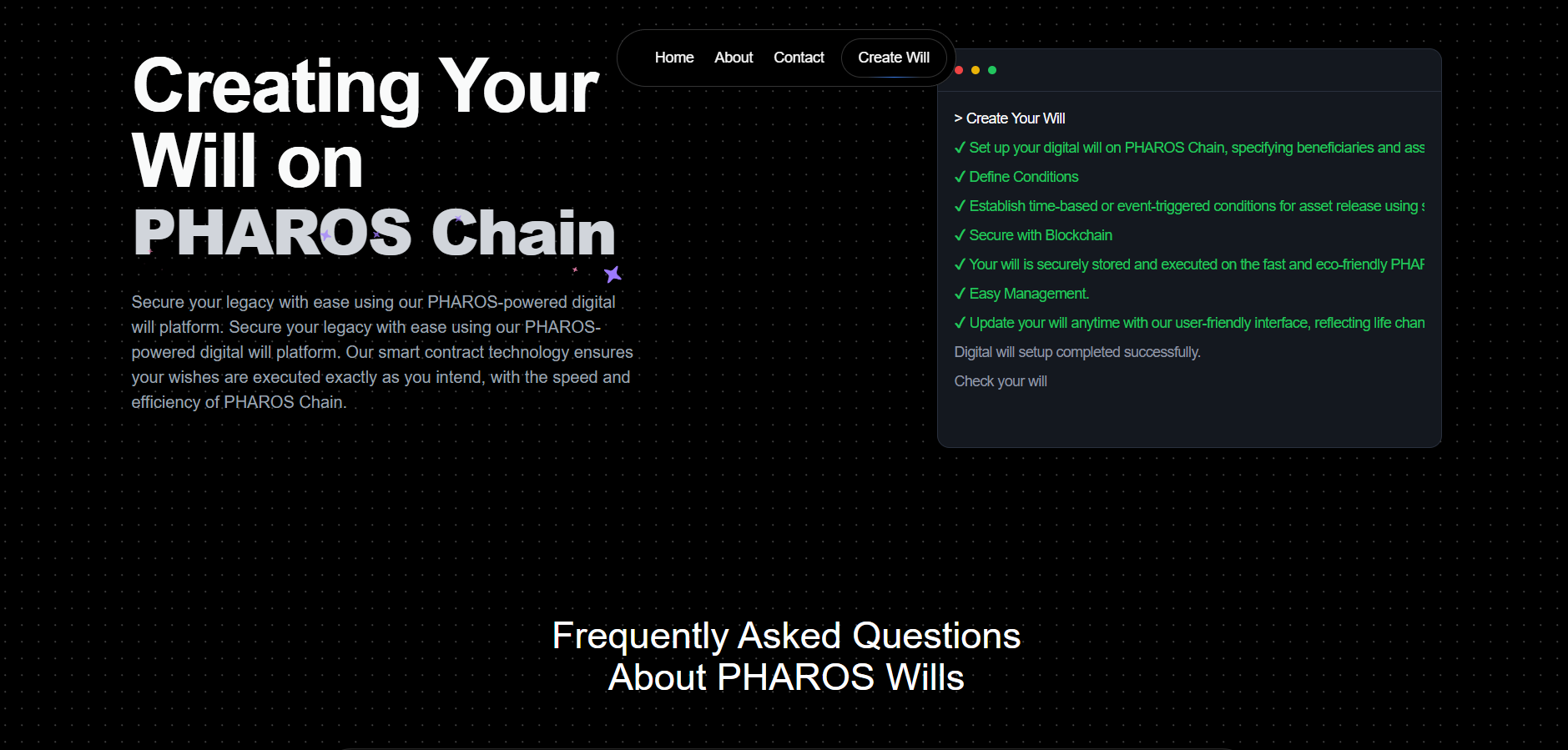 By integrating with Pharos Blockchain, Legacy Onchain delivers a cutting-edge solution for modern legacy planning. The combination of Pharos’s high performance and Legacy Onchain’s innovative Smart Wills creates a secure, efficient, and globally impactful platform for asset management and inheritance.