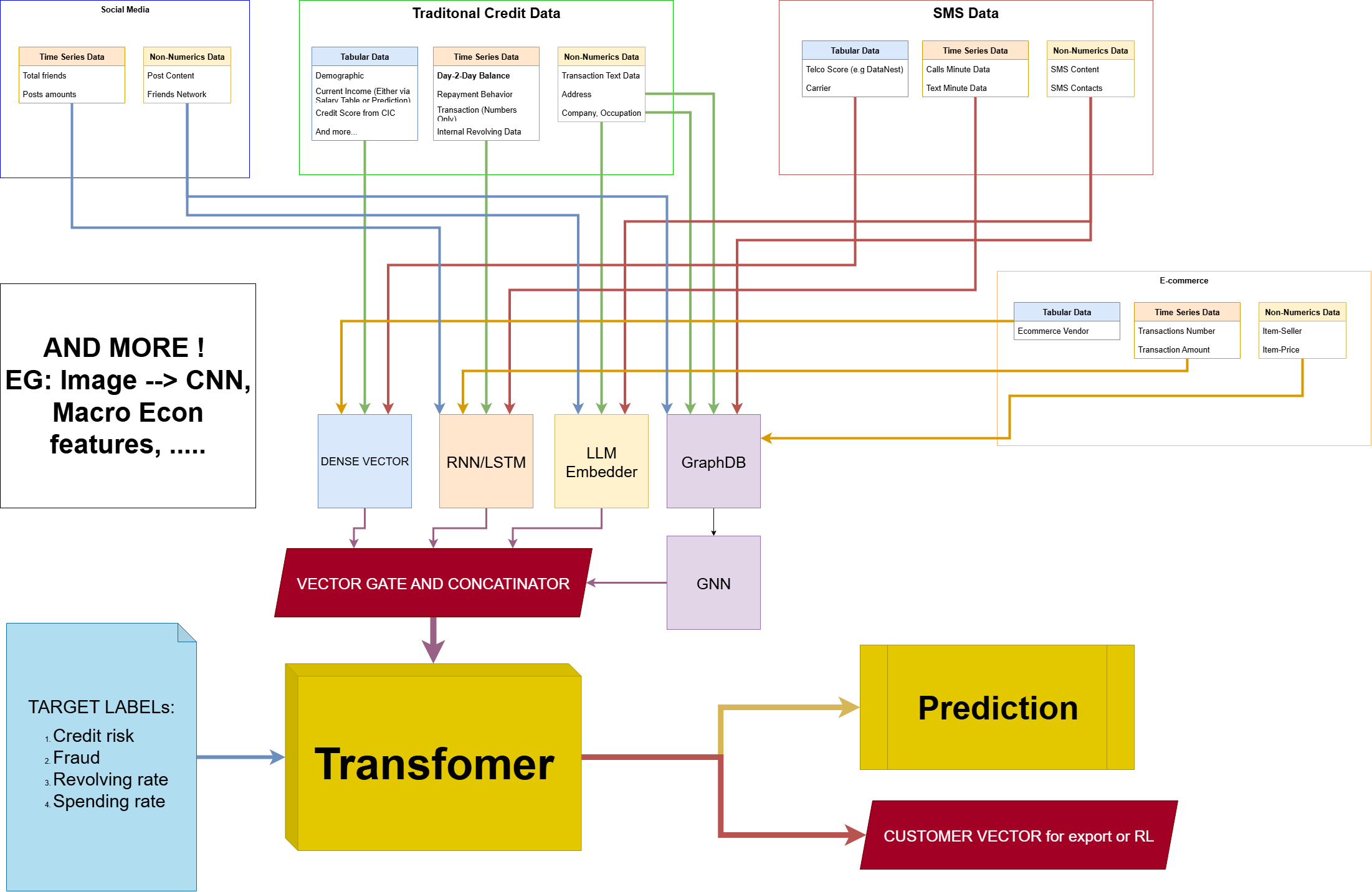 In the field of credit risk, the use of alternative data such as transaction patterns, geolocation information, mobile usage, and behavioral signals has become increasingly important. However, these data sources are often high-dimensional, unstructured, and noisy, which makes them difficult to process efficiently with traditional modeling techniques like logistic regression or gradient boosting. From industry experience, I know that the actual running and training of these models typically takes only a fraction of the time compared to the far more demanding tasks of data preparation and feature engineering. These steps not only consume significant resources but also reduce data dimensionality and depth. Traditional models, designed primarily for structured tabular inputs, are limited in their ability to capture temporal dependencies, latent interactions, and evolving risk profiles within alternative data streams.