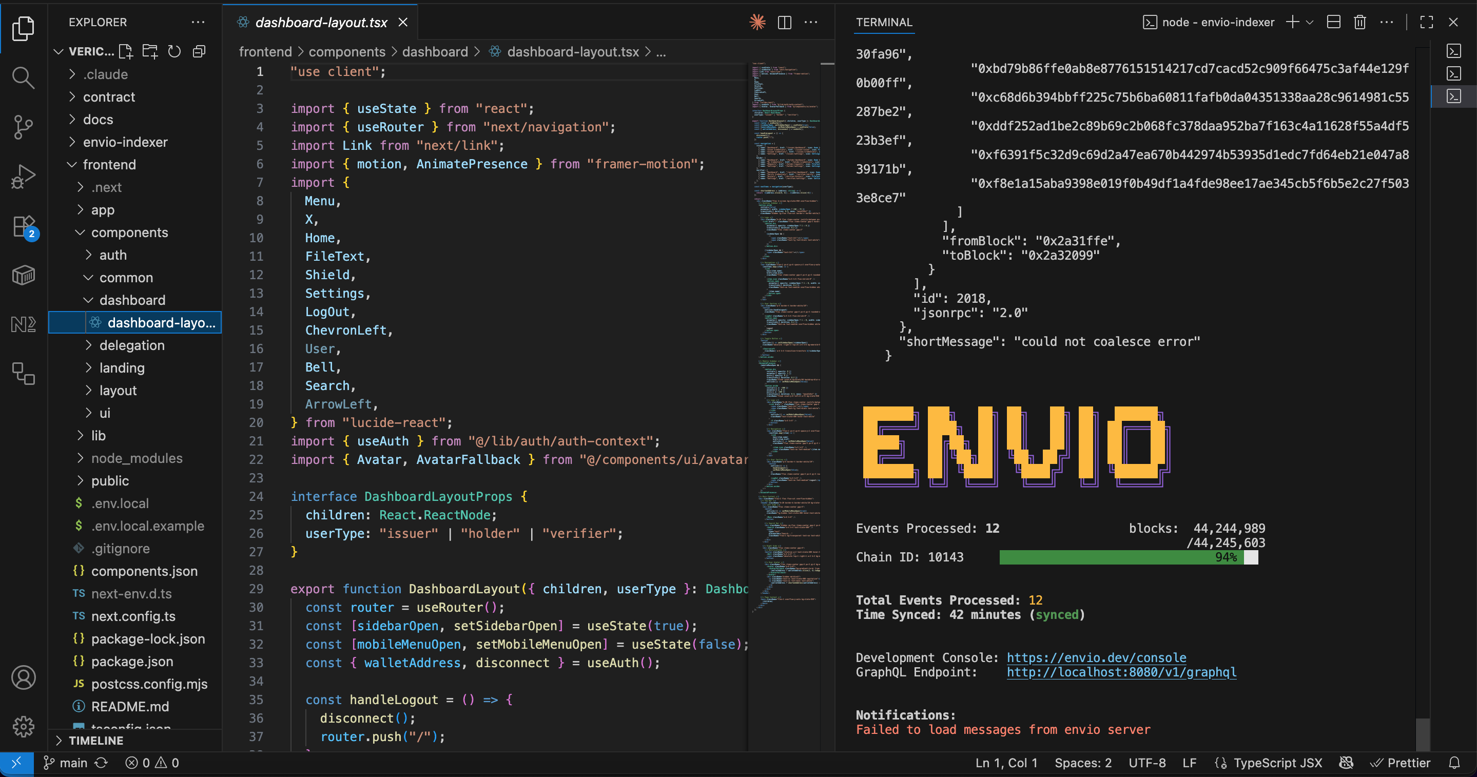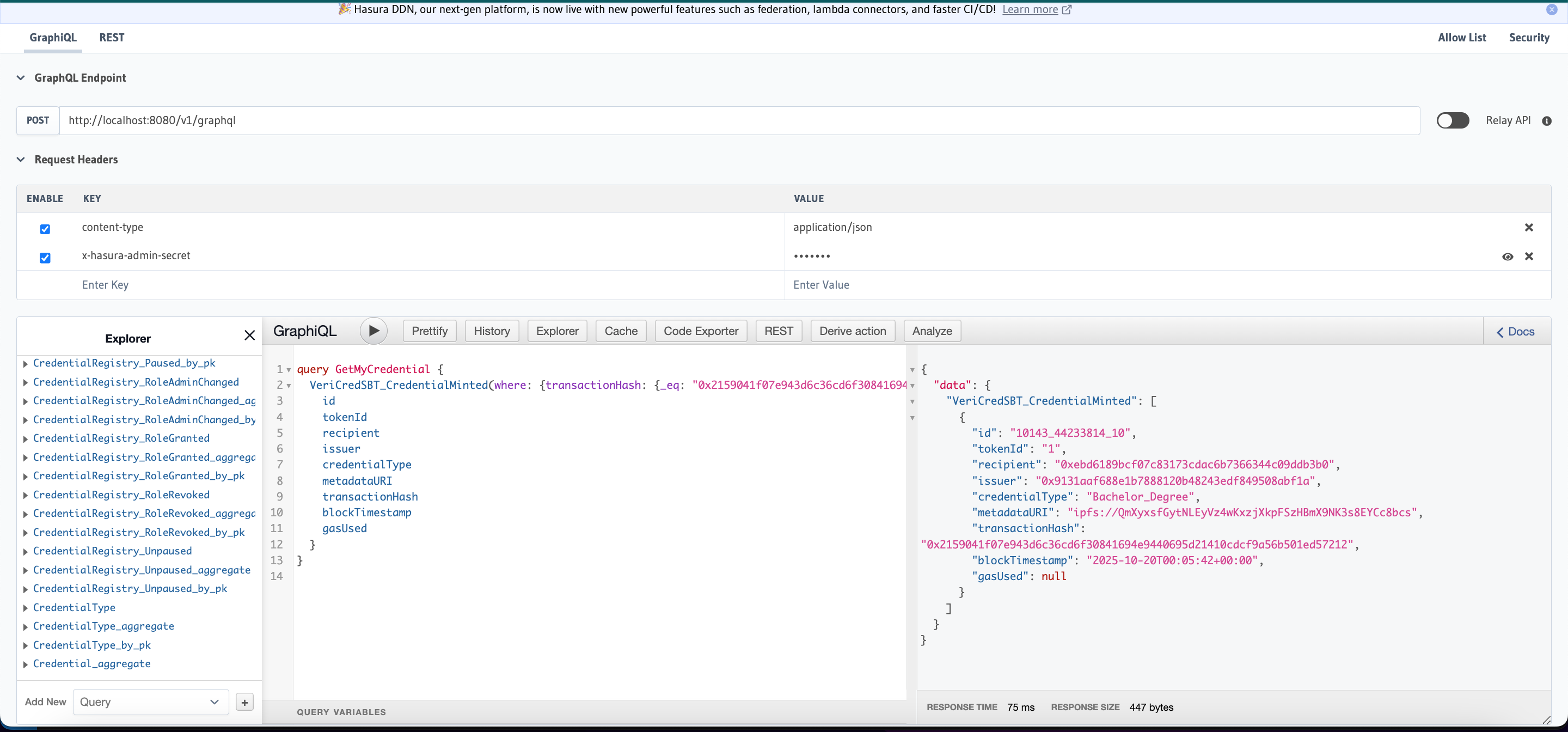 Envio HyperIndex powers VeriCred+ with GraphQL queries for: