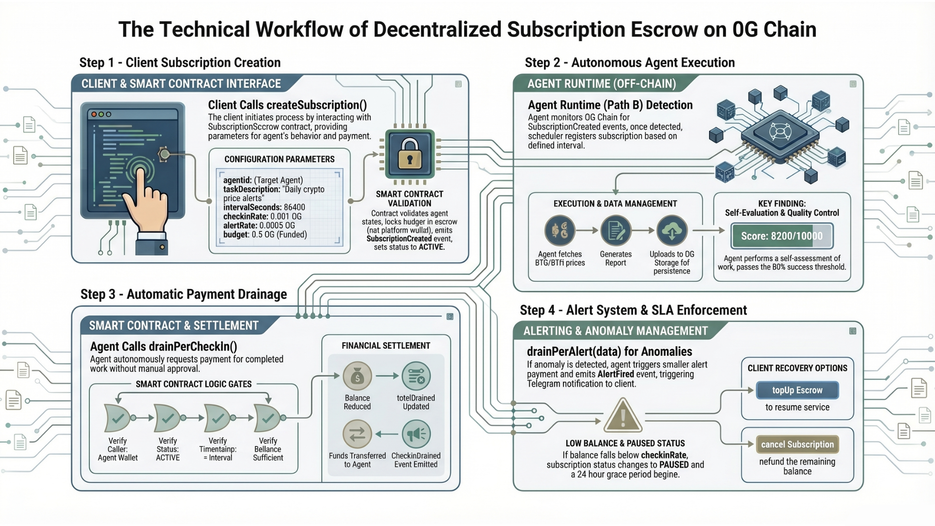 0G Chain | Runs Progressive Escrow and Subscription Escrow smart contracts, funds are locked until quality is proven |