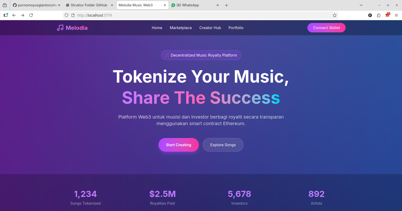 Melodia is a decentralized music royalty platform built on the Mantle Network that empowers artists to tokenize their creative work. By transforming song royalties into fractionalized digital assets,